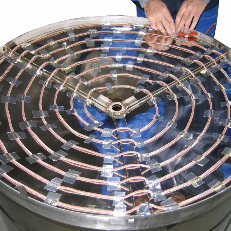 Le boîtier de raccordement est fixé directement sur la cuve. Le câble chauffant est monté sous le plancher de l'extracteur, isolé par une mousse isolante et protégé par une tôle en acier inoxydable. La sonde de température fournie régule la température afin d'éviter toute surchauffe.