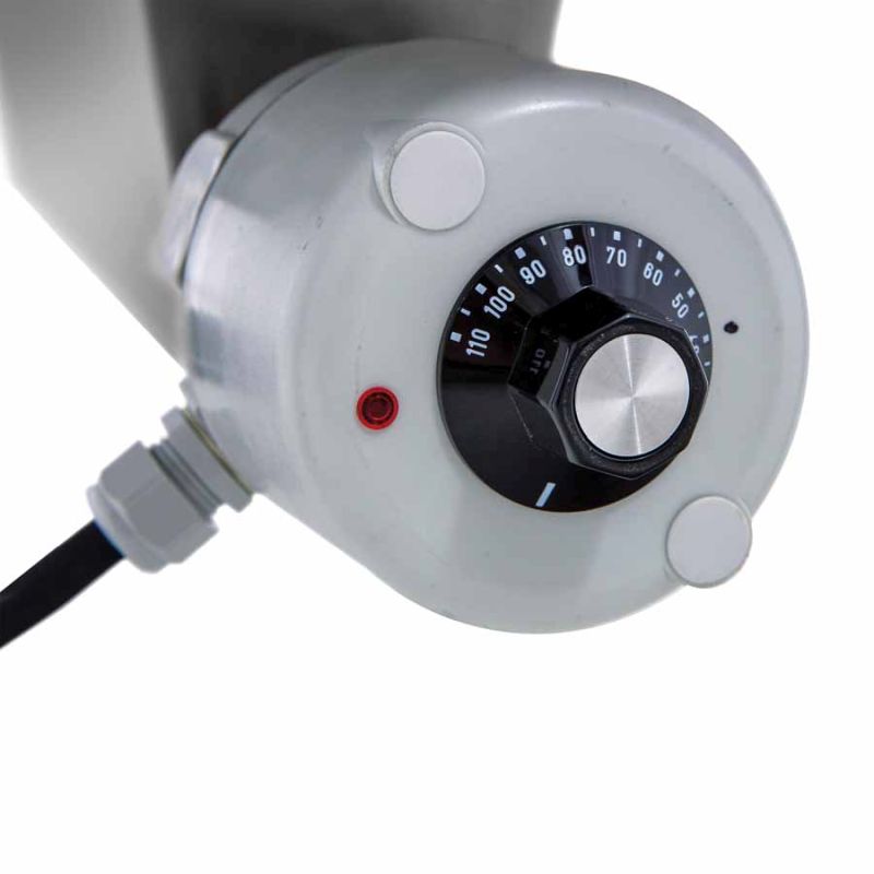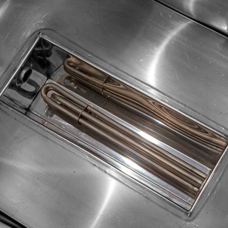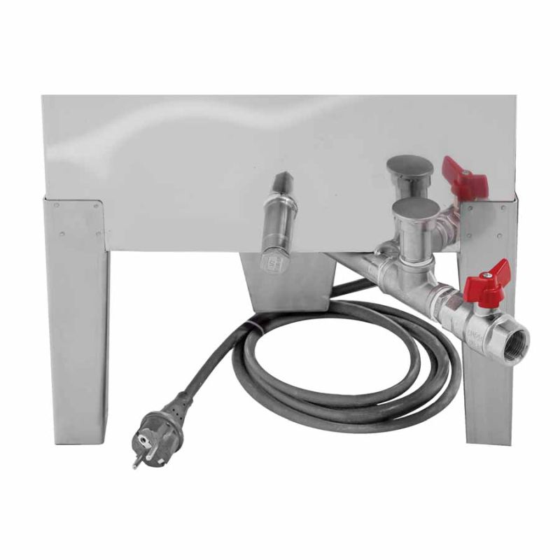 - Résistance plongeante 3 kW/230 V avec thermostat réglable 30–110 °C et protection marche à sec.