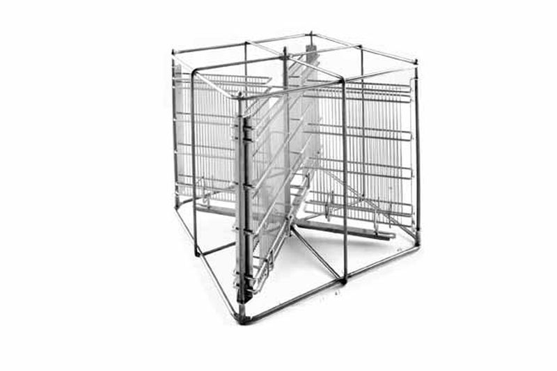 Les paniers à cadres sont réalisés à partir de barres grillagées verticales d'une densité appropriée pour éviter d'endommager les cadres lors de l'extraction. Ils sont reliés entre eux par un mécanisme spécifique. Ces paniers empêchent le miel de s'accumuler pendant l'extraction ; ainsi les cadres sont secs après l'extraction.