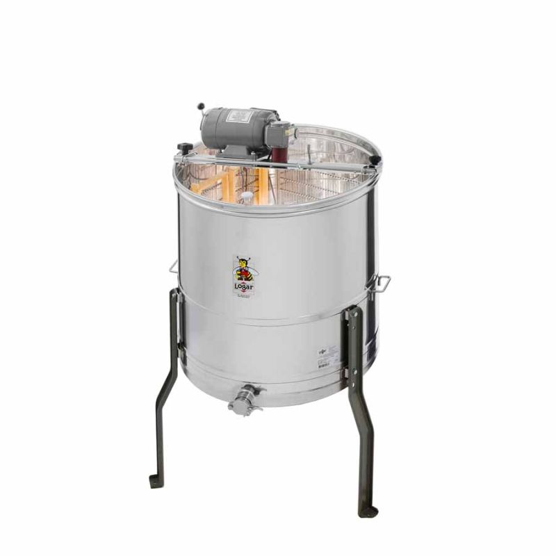 Extracteur de miel 4 cadres, universel, avec motorisation 110 W / 230 V et interrupteur de sécurité intégré qui coupe automatiquement le moteur à l'ouverture du couvercle. La technologie de pointe nous a permis de concevoir un fond d'extracteur innovant. Le fond de la cuve est soudé sans joint et incliné en direction de la sortie. Le robinet d'extraction en acier inoxydable est soudé au point le plus bas afin que tout le miel puisse s'écouler. Toutes les pièces en contact avec le miel sont en matériaux conformes aux normes alimentaires. Le couvercle est monté sur des charnières spéciales et réalisé en acrylique transparent, ce qui permet d'observer l'opération d'extraction. La construction spéciale des pieds assure une stabilité fiable de l'extracteur.