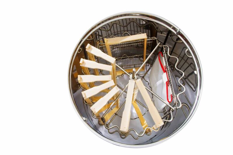 Die Honigschleuder besteht aus hochwertigem polierten Edelstahl, der der Honigschleuder Nachhaltigkeit verleiht. Alle Teile, die in Kontakt mit Honig kommen, sind aus überprüften Materialien, die für Lebensmittel geeignet sind und über ein entsprechendes Zertifikat verfügen.