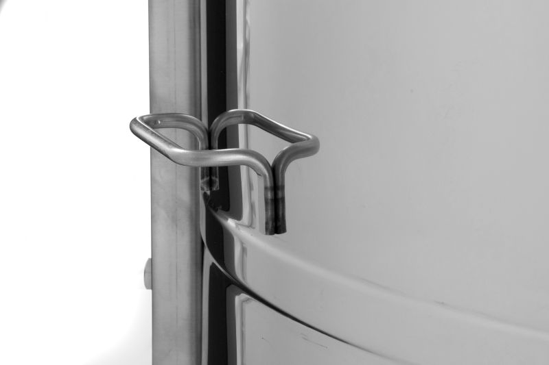 Die Honigschleuder hat zwei rostfreie Quetschhähne. Einer ist am tiefst möglichen Bodenpunkt eingebaut, was gewährleistet, dass der gesamte Honig aus der Honigschleuder abfließen kann.