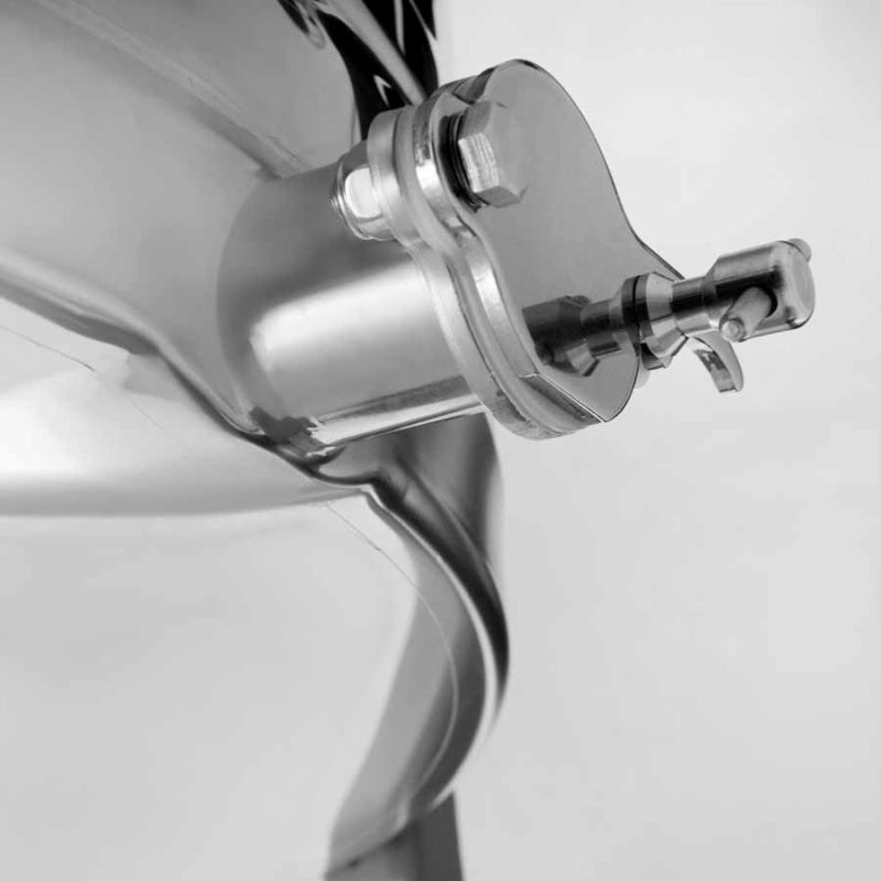 - Diamètre de la cuve : Ø 76 cm (int. Ø 76 cm / ext. Ø 79 cm) ; fond de cuve soudé sans joint et incliné vers le robinet-pince