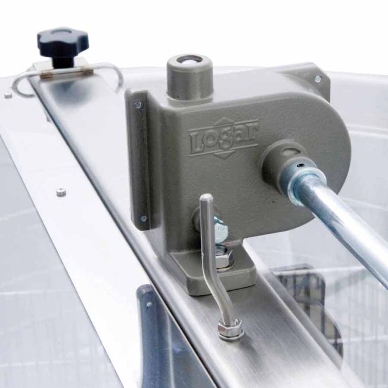 Eine Honigschleuder der Marke Logar – Synonym für Langlebigkeit, innovative Lösungen, die die Arbeit erleichtern, zuverlässigen Service und Ersatzteile.